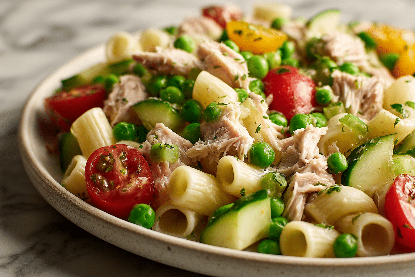 Healthy Tuna Pasta Salad with Peas is a fresh, satisfying dish that brings together tender pasta, flaky tuna, and sweet green peas in a light, creamy dressing. It’s a balanced meal that feels comforting yet refreshing, making it perfect for warm afternoons, quick lunches, or easy dinners.