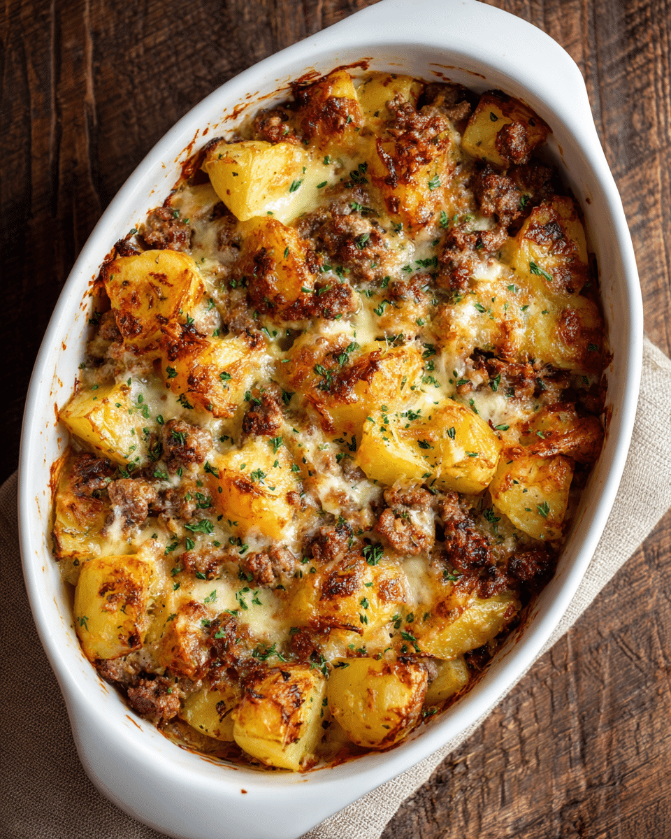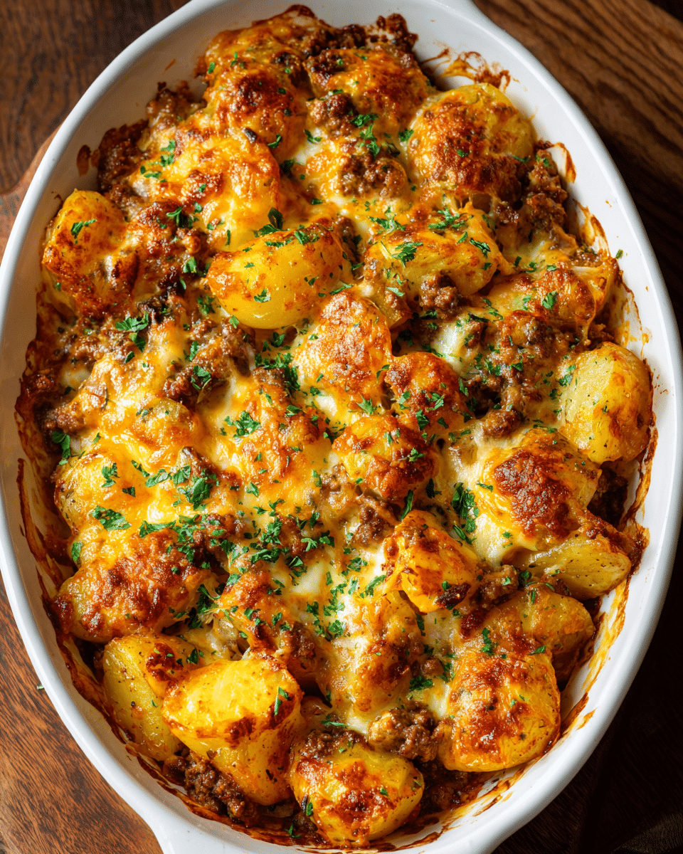• Remove foil and bake for another 15–20 minutes, until the potatoes are tender and the cheese is bubbly and golden.