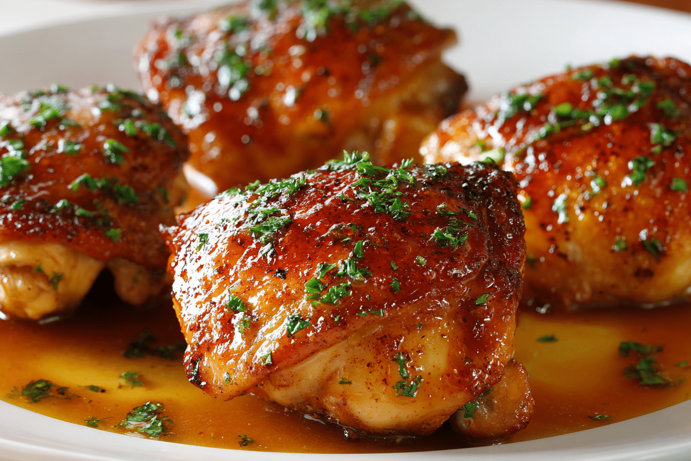 Tender, juicy chicken thighs simmered in a sweet and savory garlic-honey glaze. A quick, flavorful dinner made with five simple ingredients and ready in under an hour.