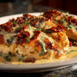 Irresistible Marry Me Chicken is a rich, creamy dish featuring tender chicken simmered in a flavorful sauce made with garlic, sun-dried tomatoes, and Parmesan. The sauce is smooth and savory with a hint of tang, creating a comforting meal that feels both special and approachable.