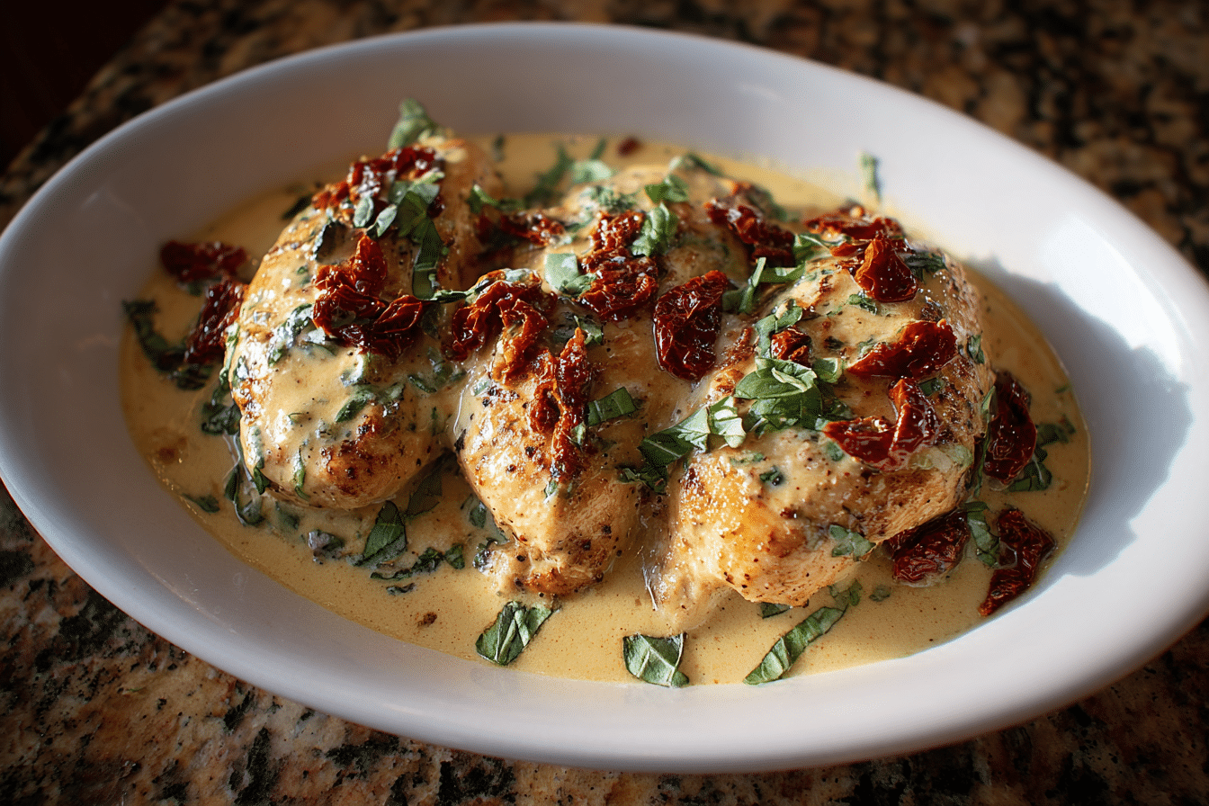 Irresistible Marry Me Chicken is a creamy, flavorful dish with tender chicken simmered in a rich garlic and sun-dried tomato sauce.