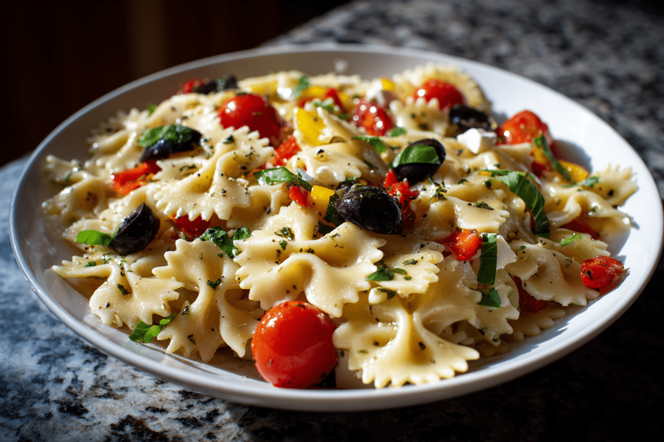Italian bow tie pasta salad is best served chilled or slightly cool. This helps maintain its refreshing quality and keeps the textures balanced.