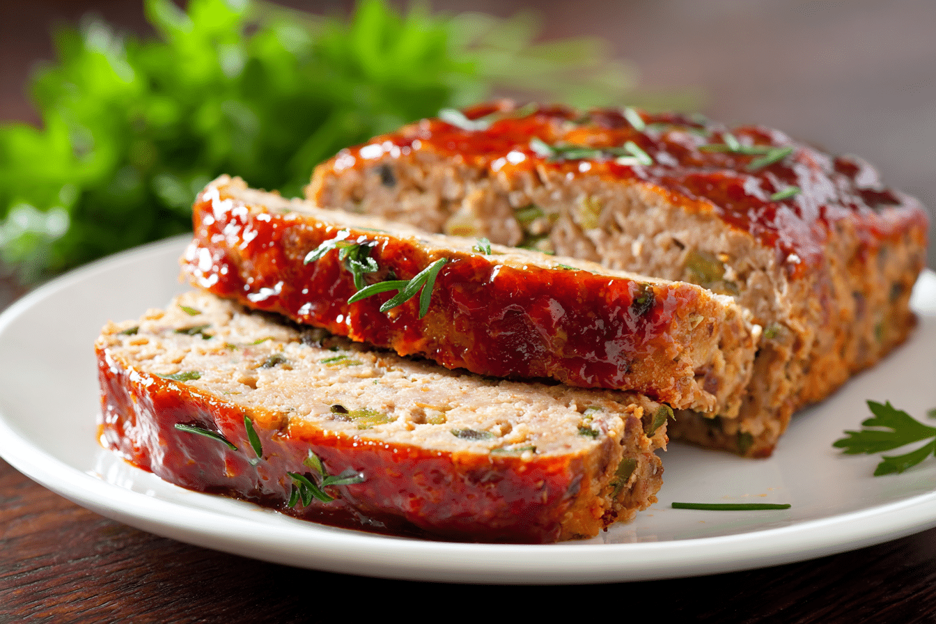 A healthy and flavorful turkey meatloaf inspired by Jamie Oliver—moist, herby, and topped with a tangy tomato glaze. Perfect for family dinners or meal prep.