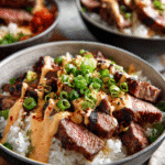 Take your weeknight dinner to the next level with Korean BBQ Steak Rice Bowls—a perfect harmony of sweet-savory marinated steak, fluffy rice, crisp vegetables, and a drizzling of spicy cream sauce that brings it all together. These bowls are quick to prepare, deeply flavorful, and totally customizable, making them ideal for meal prep, family dinners, or whenever you crave something satisfying and bold.