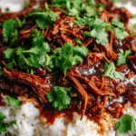 Once done, remove the roast and shred it into large chunks. Return it to the pot to soak in the flavorful liquid. Simmer uncovered for another 10–15 minutes to let the sauce reduce slightly. -