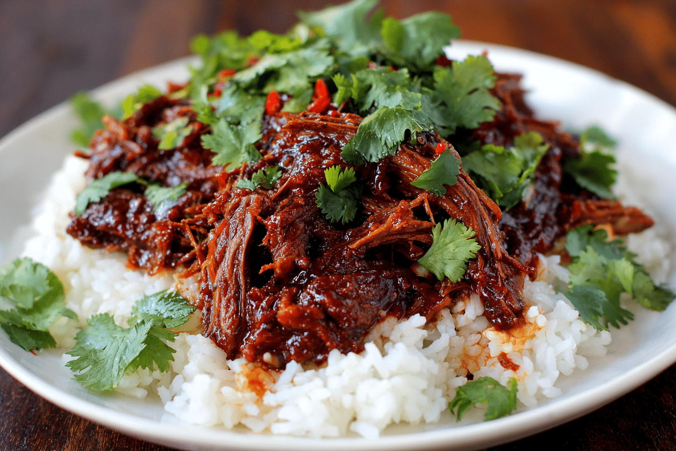 This dish is perfect for cozy evenings or special family dinners when you want something hearty but with a global twist. The magic happens in the braise — the meat becomes fall-apart tender, soaking in every drop of the aromatic broth. It’s served best over steamed rice or mashed potatoes, garnished with scallions and a drizzle of sesame oil.