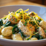 Lemon Chicken Gnocchi is a rich yet refreshing dish that brings together tender chicken, pillowy gnocchi, and a bright citrus cream sauce. It balances creamy textures with a light, zesty flavor that keeps every bite satisfying without feeling heavy.