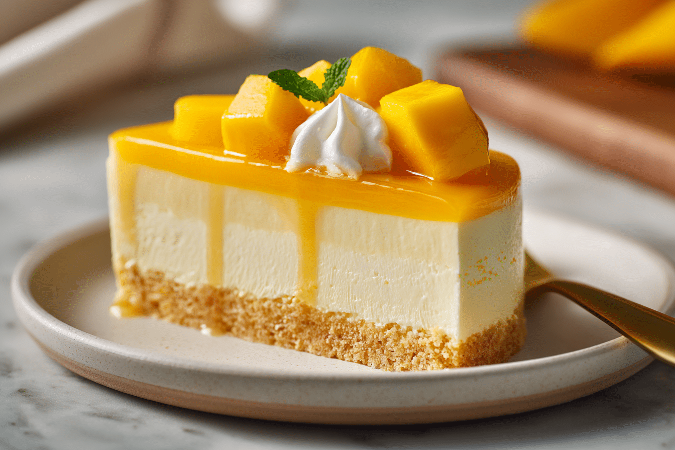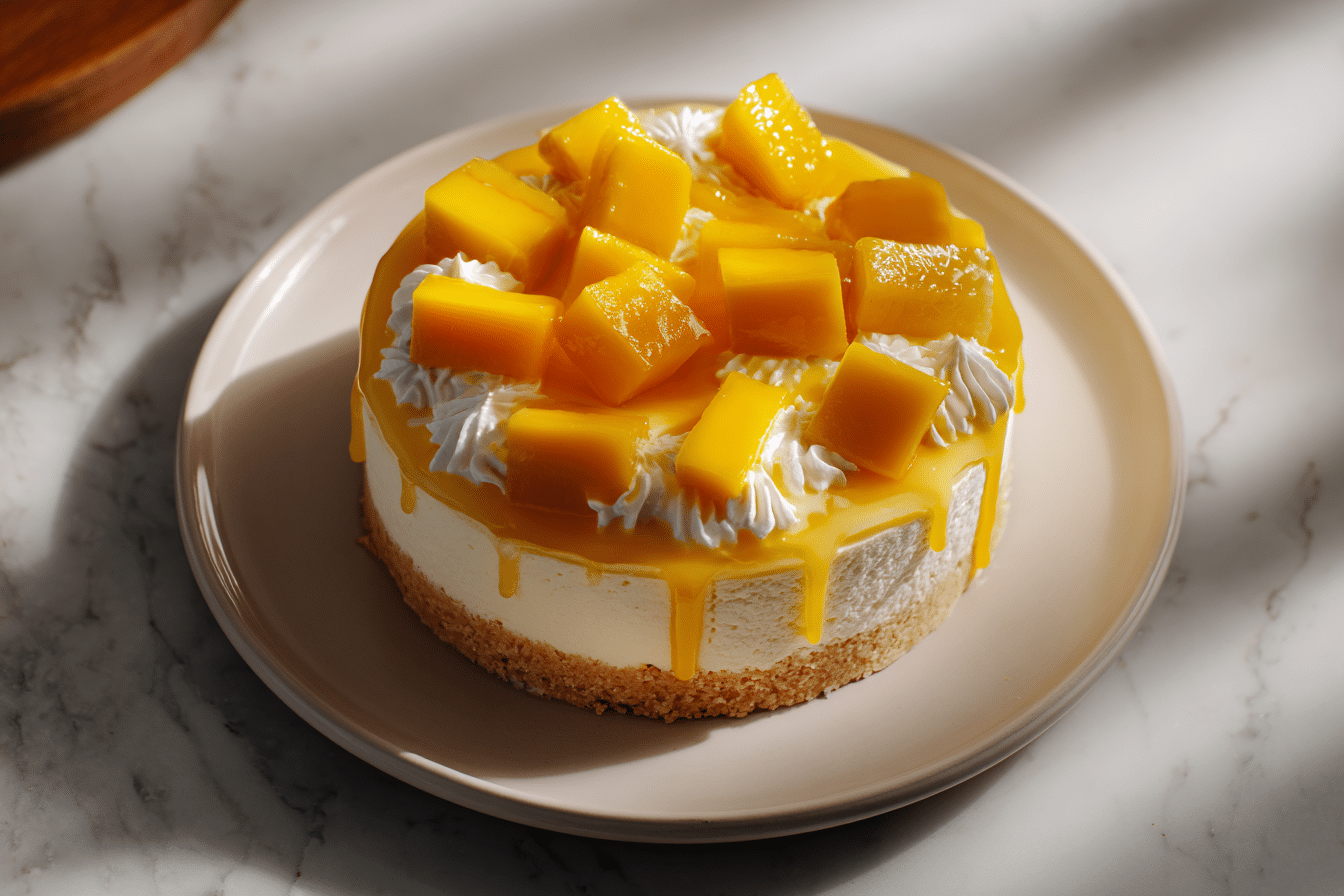Mango Mousse Cake is a light yet indulgent dessert that combines airy mousse with a soft cake base and vibrant mango flavor. Each slice delivers a smooth, creamy texture balanced by the natural sweetness and gentle tang of ripe mangoes.