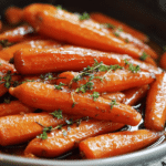 Maple & Brown Sugar Glazed Carrots bring a warm, gently sweet flavor that turns a humble vegetable into a comforting side dish. The natural sweetness of carrots pairs beautifully with rich maple syrup and soft brown sugar, creating a glossy coating that clings to every slice.