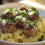 Juicy meatballs baked in rich marinara sauce and topped with melty mozzarella and Parmesan — a hearty, cheesy casserole perfect for family dinners or easy entertaining.