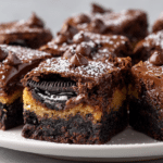 The cookie layer provides a soft, buttery foundation, while the Oreo layer adds a sweet cream-filled crunch. On top, the brownie batter bakes into a dense, chocolate-rich finish that ties everything together. These layered bars are simple to assemble yet feel impressive once sliced and served.