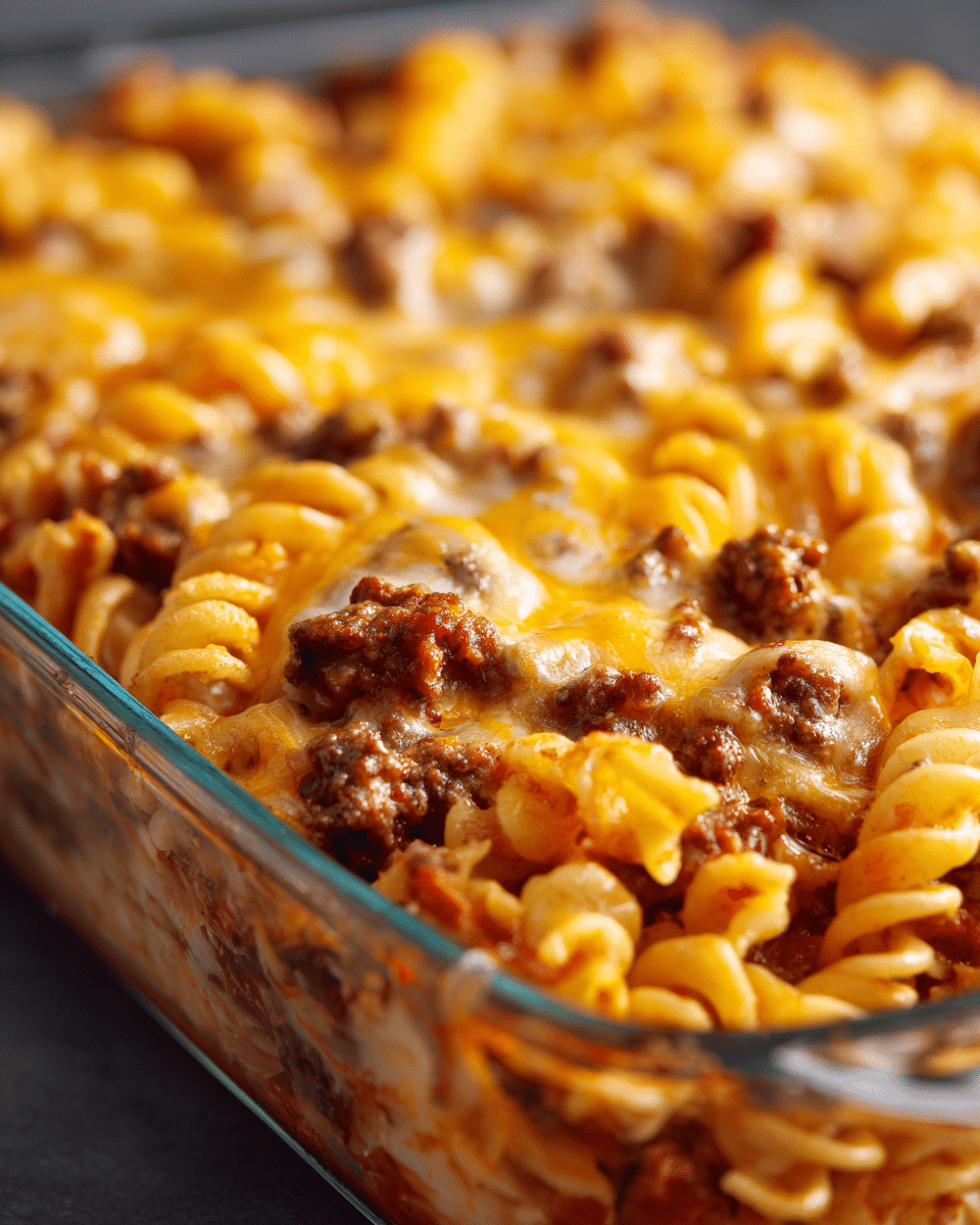 A cozy, one-pot pasta dinner featuring seasoned ground beef, tender noodles, rich tomato sauce, and loads of gooey melted cheese. Weeknight-friendly and full of flavor.