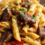 Sink your fork into this One-Skillet Spicy Garlic Butter Parmesan Steak Pasta, and get ready for a dinner that’s rich, indulgent, and shockingly easy. Tender seared steak, buttery garlic-infused sauce, a kick of red pepper heat, and plenty of nutty Parmesan all come together with pasta in one pan. This is the kind of meal that feels restaurant-worthy but requires no special techniques—just simple, craveable flavors that satisfy every time.