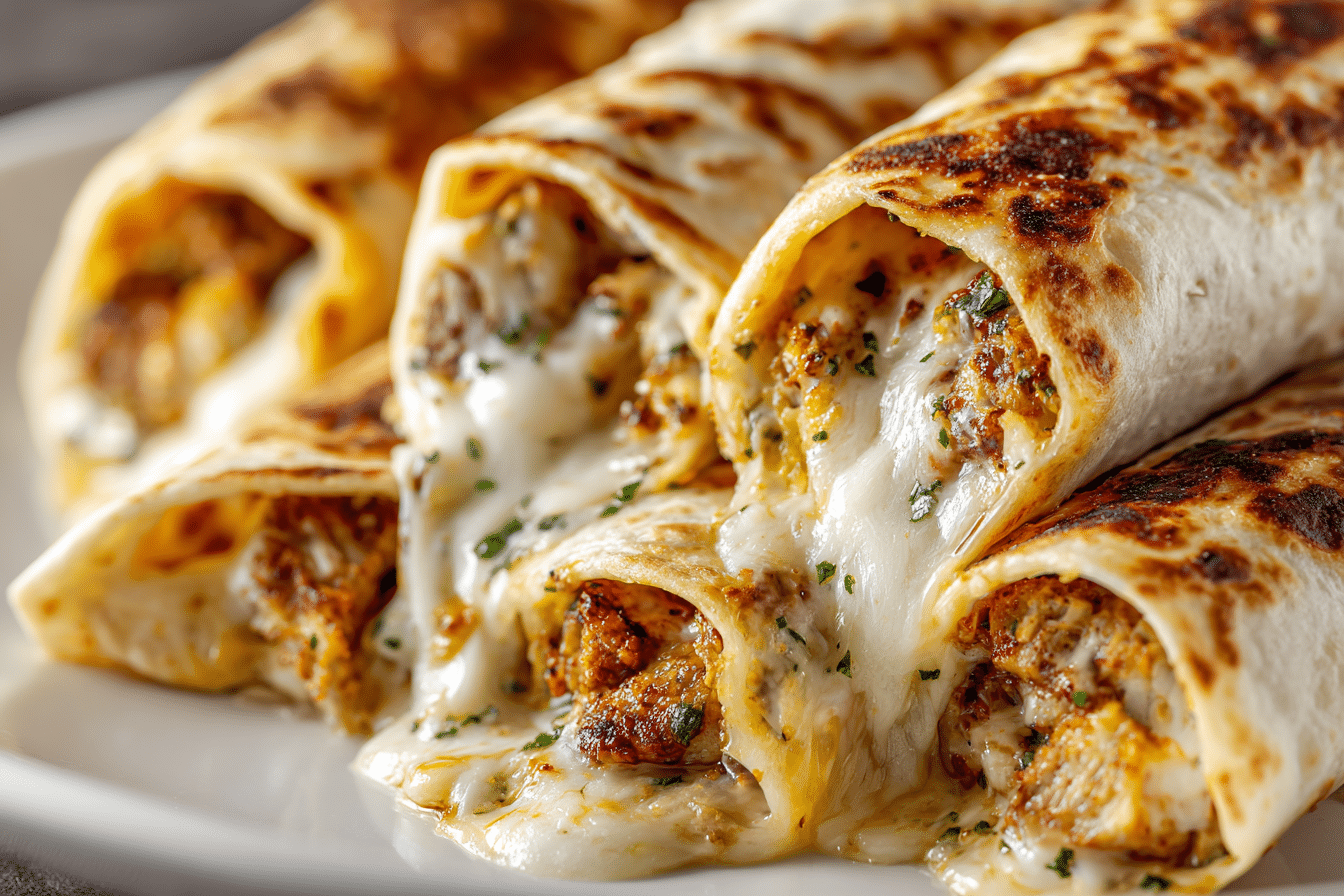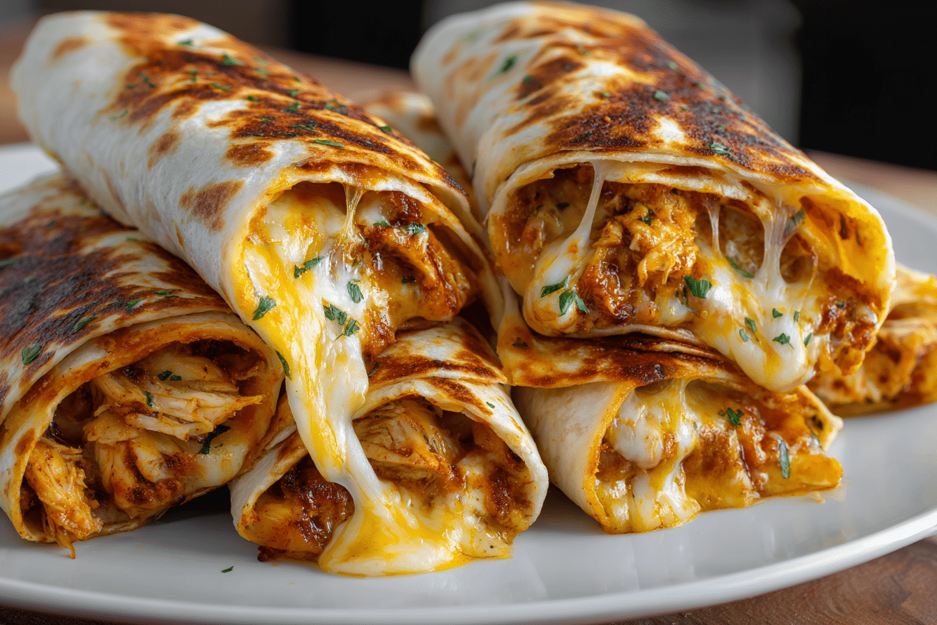 These cheesy garlic chicken wraps are filled with creamy, flavorful chicken and toasted to golden perfection—quick, delicious, and comforting.
