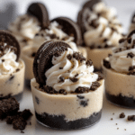 Oreo No-Bake Cheesecake Cups are a creamy layered dessert that combines crushed chocolate sandwich cookies with smooth cheesecake filling. Each spoonful delivers a rich mix of crunchy cookie crumbs and silky cream cheese mixture, making it a simple dessert that feels indulgent without requiring an oven.