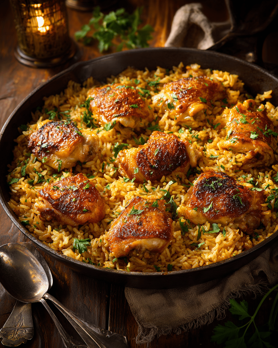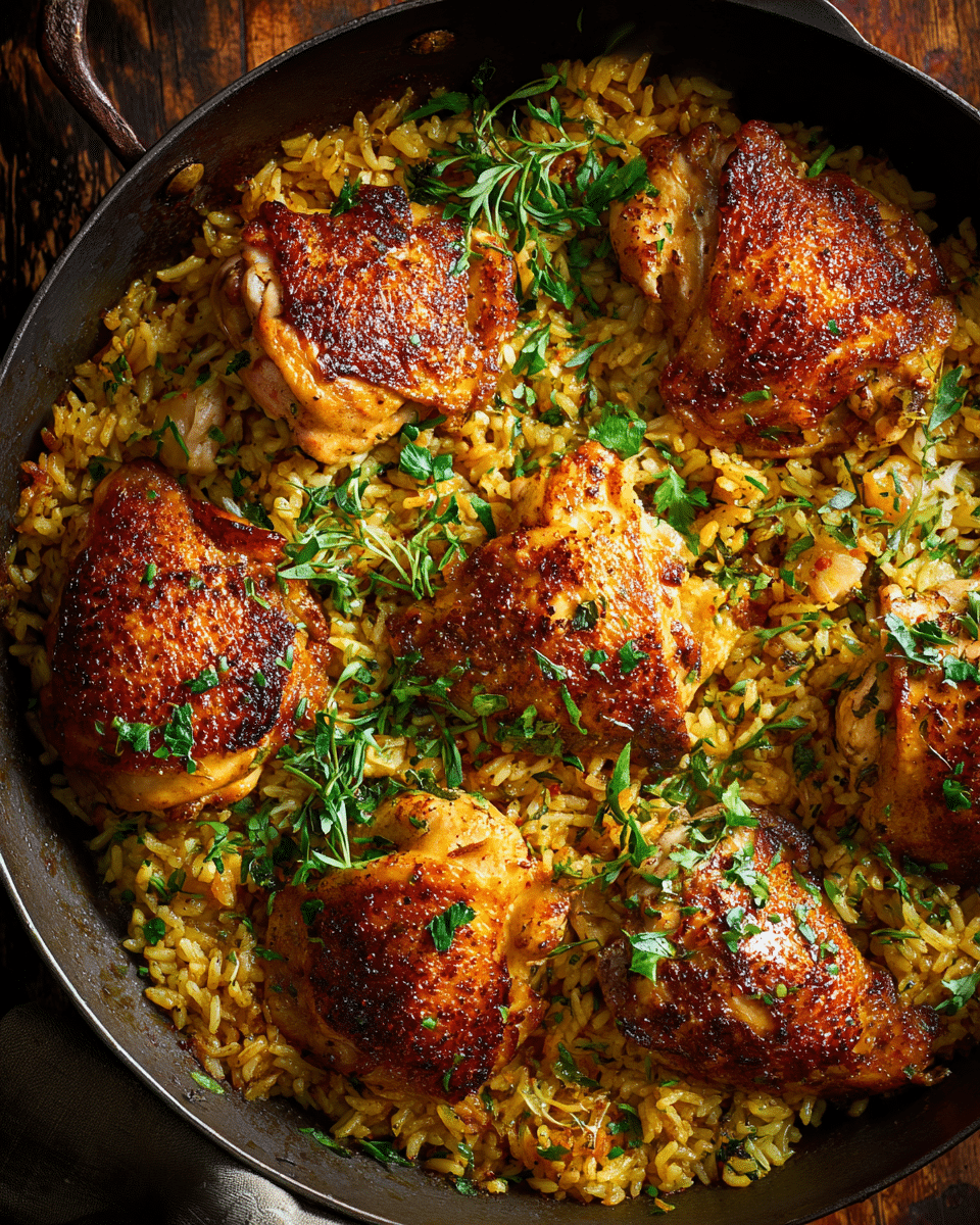 The result? Golden, crispy-skinned chicken atop a bed of buttery, flavorful rice that tastes like it’s been simmered all day — all with minimal effort.