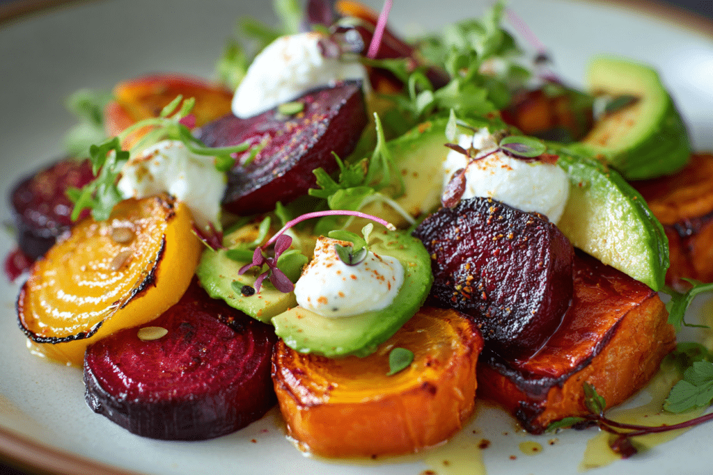Roasted Beet, Sweet Potato & Avocado Salad with Whipped Ricotta is a vibrant dish that combines earthy, sweet, and creamy elements into one beautifully balanced plate. The roasted vegetables bring …