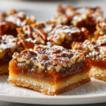 Pecan Pie Bars bring all the rich, buttery flavors of classic pecan pie into an easy-to-slice dessert. With a tender shortbread crust and a gooey pecan filling, these bars deliver the perfect balance of crisp, soft, and nutty textures in every bite.