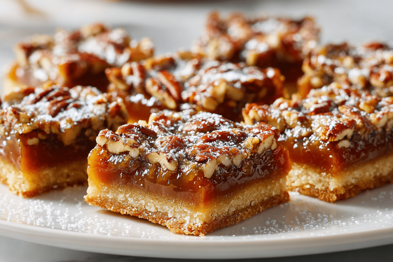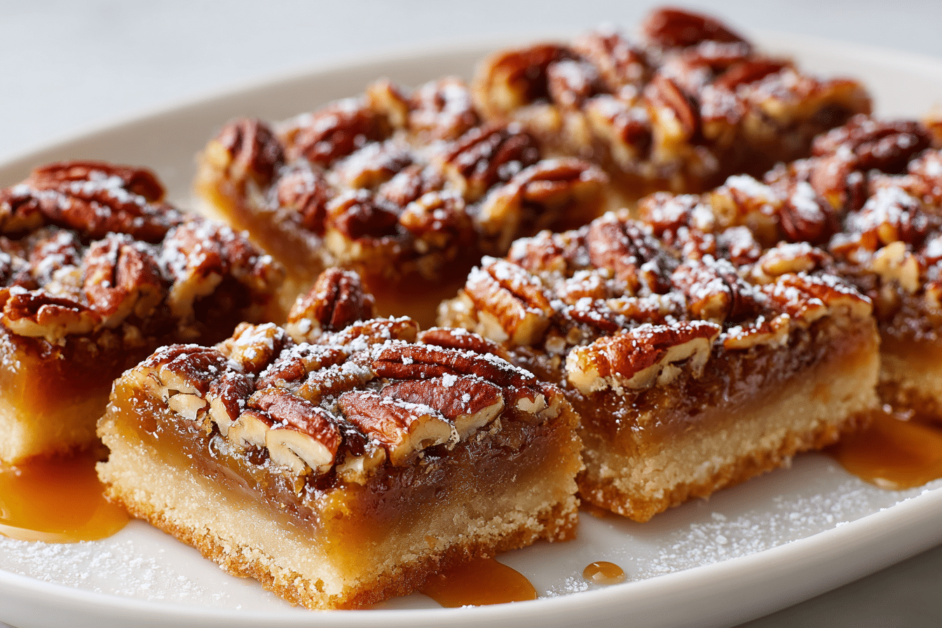 Classic pecan pie bars with a buttery shortbread crust and rich, gooey pecan filling.