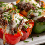 Philly Cheesesteak Stuffed Peppers bring together everything you crave about the iconic sandwich in a lighter, fork-and-knife format. Tender bell peppers cradle thinly sliced beef, sweet sautéed onions, and melted cheese that bubbles into every savory bite. It’s hearty without feeling heavy, rich without relying on a hoagie roll.