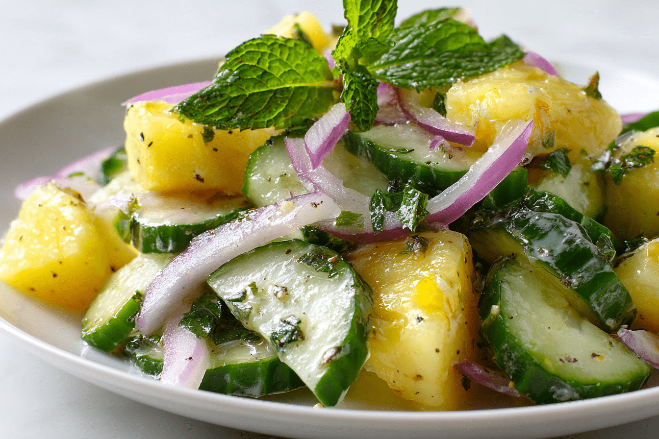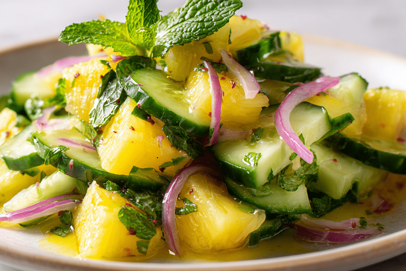 A refreshing salad combining sweet pineapple, crisp cucumber, and a light tangy dressing.