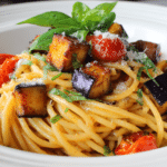 Roasted Eggplant Pasta combines tender roasted eggplant with tomato sauce and pasta to create a comforting Mediterranean-style meal. The roasting process transforms eggplant into soft, flavorful cubes that absorb olive oil and herbs while developing lightly caramelized edges.