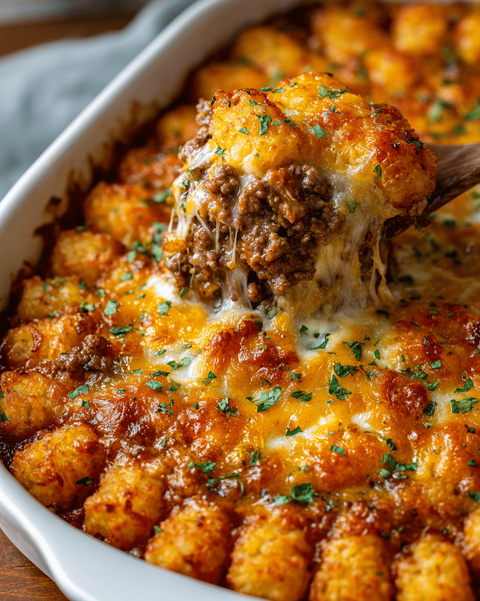 Tater Tot Casserole is the kind of cozy, comforting dish that brings everyone to the table with smiles and empty plates ready. Known for its crispy golden tater tots layered over a hearty, creamy base of ground beef, veggies, and cheese, this Midwestern favorite is a weeknight lifesaver and potluck legend. Whether you’re a busy parent needing a no-fuss dinner or a nostalgic soul craving the tastes of childhood, this casserole never disappoints.