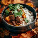 Tender beef slow-cooked in a creamy coconut curry sauce with warm spices, garlic, ginger, and a touch of sweetness. An easy, comforting meal perfect for weeknights or meal prep.