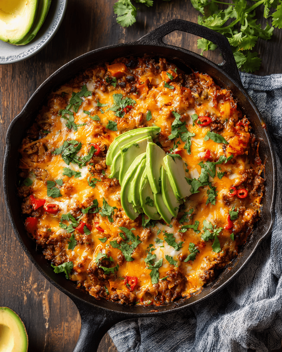 A bold, one-pan Southwest skillet made with ground beef, sweet potatoes, peppers, and beans — perfect for quick dinners and meal prep.