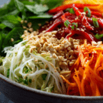 Rice noodles form the base of Spring Roll Salad with Spicy Ginger Dressing: An Incredible Ultimate Recipe. Thin vermicelli-style rice noodles are ideal because they cook quickly and absorb dressing without becoming sticky. If unavailable, thin glass noodles or even lightly cooked angel hair pasta can substitute, though the flavor will shift slightly.