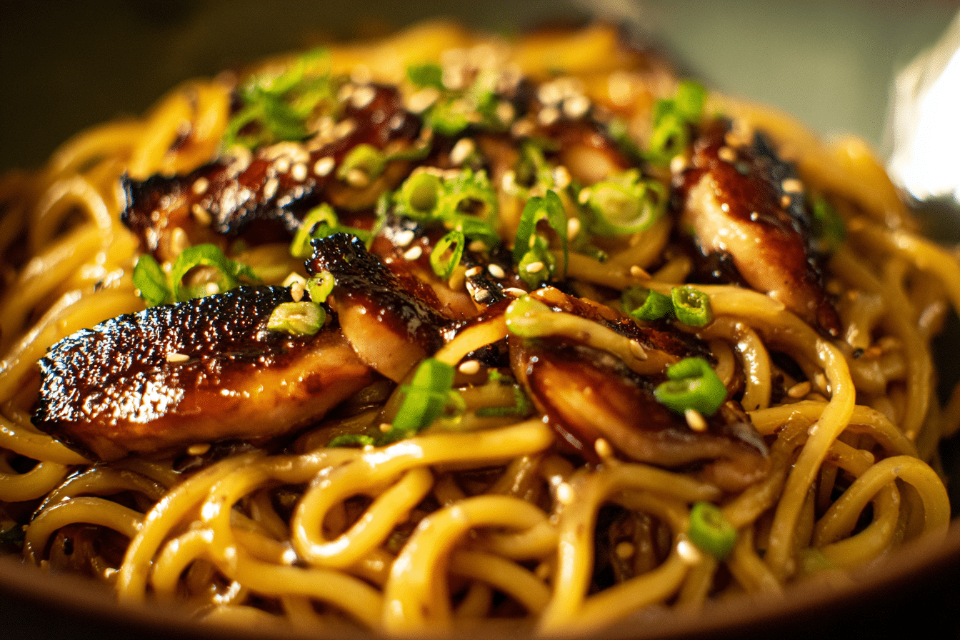 This recipe brings together sweet, savory, and umami-rich elements in one skillet. The sauce is sticky and rich with hints of garlic, soy, and a touch of brown sugar, while the chicken stays juicy and well-coated. Toss it all with your favorite noodles and you’ve got a hearty, irresistible meal ready in under 30 minutes.