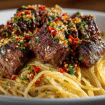 Sweet and Spicy Garlic Steak Pasta is a mouthwatering fusion of bold flavors—savory seared steak, sweet chili glaze, garlicky undertones, and a touch of heat, all tossed with tender pasta. It’s a dish that hits all the right notes: sweet, spicy, salty, and umami-rich.