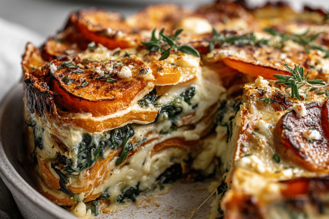 Sweet Potato & Spinach Bake is a layered, comforting dish with tender sweet potatoes, savory spinach, and a creamy egg mixture baked until golden.
