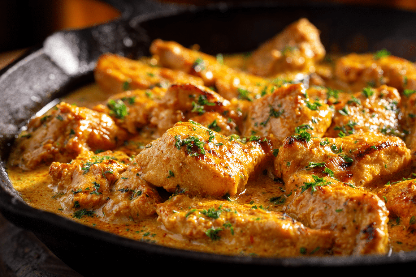 Imagine the sizzle of a cast-iron skillet, the aroma of seasoned chicken mingling with sweet cream butter, and a rustic, golden crust forming on every piece. This Texas Roadhouse Butter Chicken Skillet brings restaurant-style comfort food right to your home kitchen — with just one pan and simple ingredients.