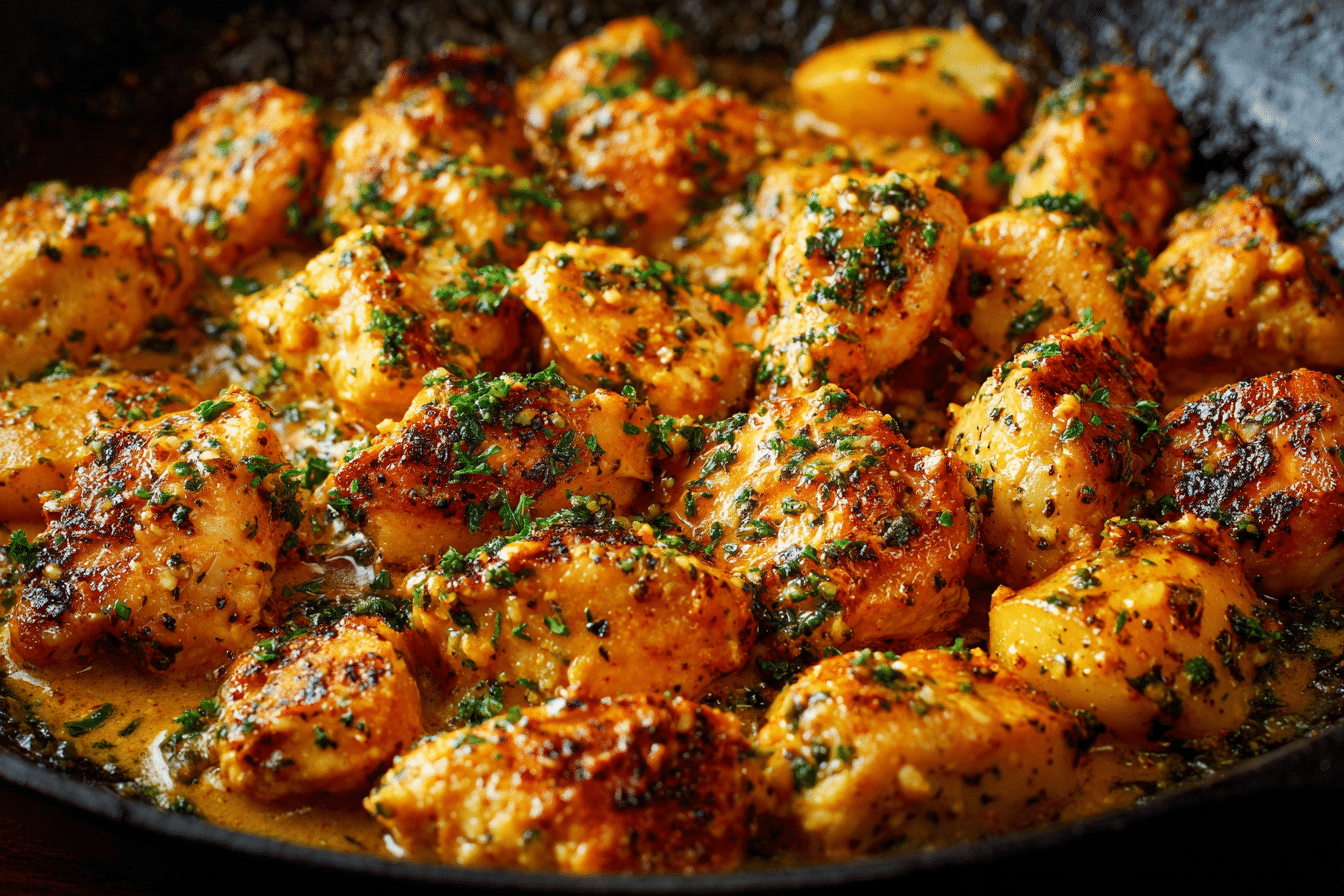 Spoon the melted garlic butter over the chicken continuously for 2–3 minutes. If desired, add a splash of cream or squeeze of lemon at this stage. This step builds flavor and keeps the chicken moist.