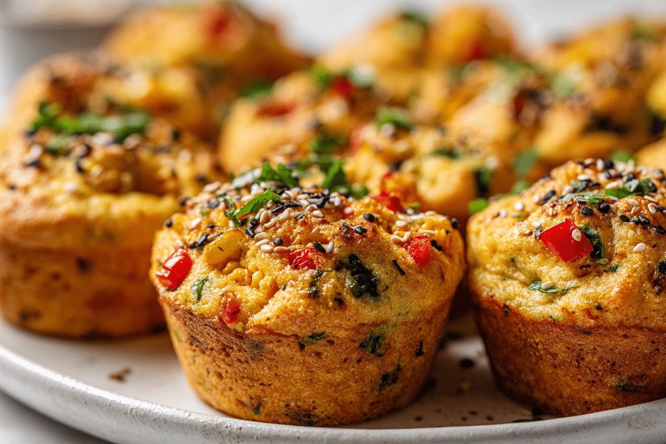 Vegan Savoury Muffins are soft, vegetable-filled muffins made with plant-based ingredients, offering a hearty and flavorful snack or meal option.