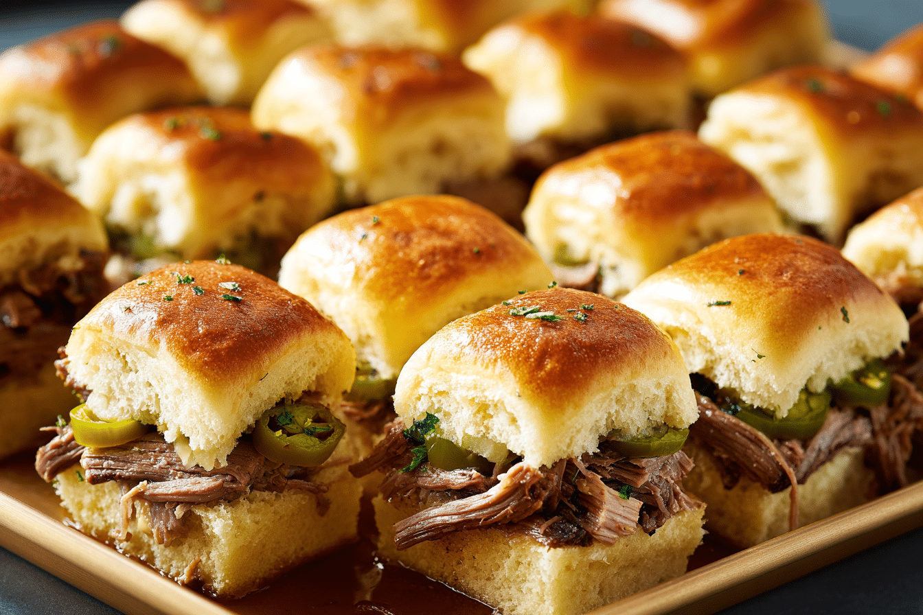 These crowd-pleasing sliders combine buttery richness, a hint of tang from pepperoncini, and the savory boost of seasoning blends. Served warm on soft rolls with gooey cheese, they’re the kind of meal that disappears fast—whether you’re hosting a game day bash or whipping up dinner for the family.