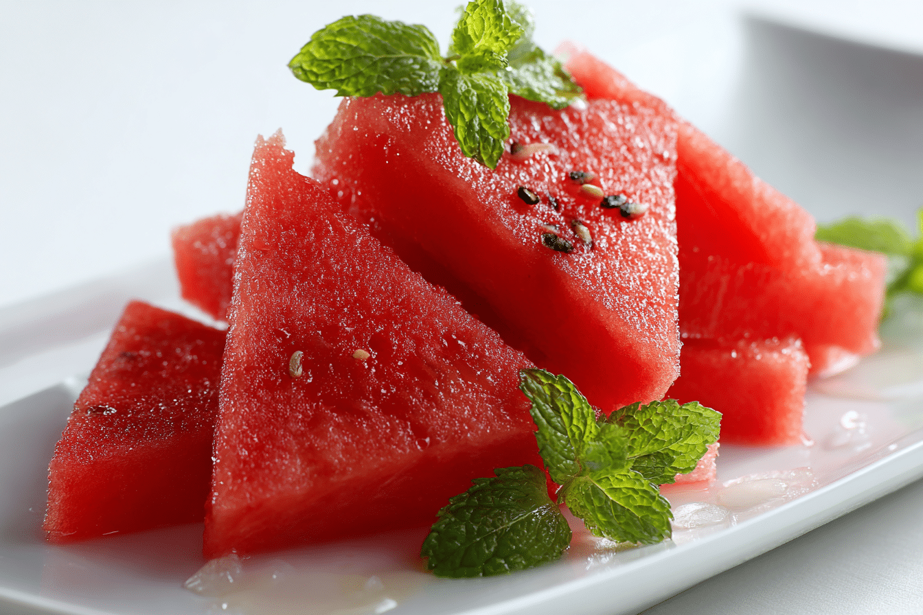 Refreshing slices of ripe watermelon served chilled, sometimes paired with lime, mint, or feta cheese for simple flavor variations.