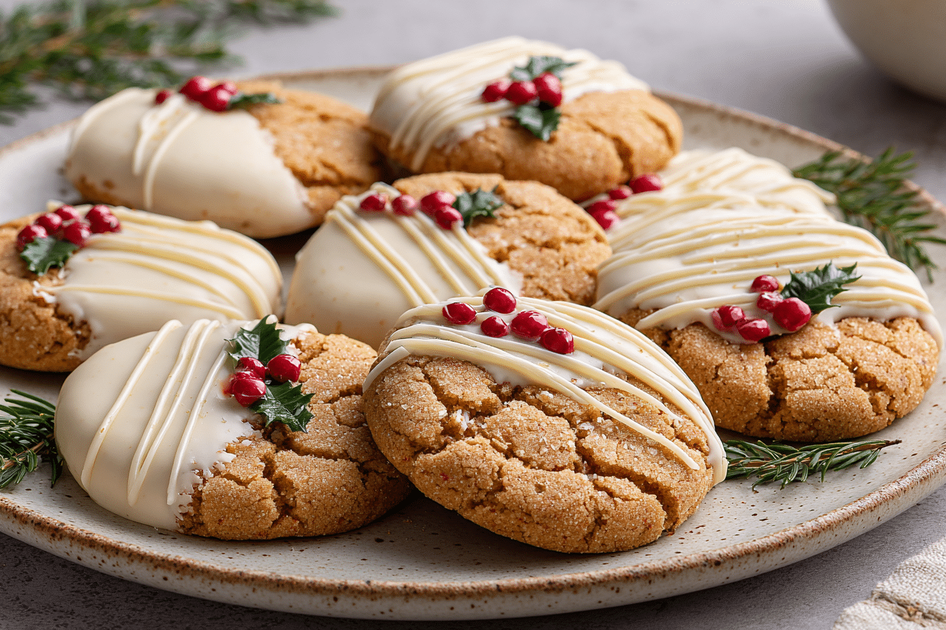 Soft, chewy maple cookies dipped in creamy white chocolate—perfect for Christmas cookie trays, gifting, or cozy winter nights.